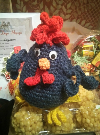 Новогодние чудеса продолжаются. Сегодня пошла посмотреть почту и обнаружила квитанцию о посылке. Милая Люция, спасибо тебе за тёплые слова и подарки. В волшебной коробочке я обнаружила тени для век, новогоднюю открытку и настоящее письмо от Деда Мороза и от Люции. Тёплые варежки как раз подойдут для наших зимних холодов, а диск отдам сыну, пусть занимается. Моя подруга с дочкой занимались у Норбекова, Ира рассказывала много интересного. Люция, петушок просто чудо, из рук его выпускать не хочется. У меня теперь есть обезьянка и петушок сотворенные золотыми руками San. Отдельное спасибо за семена. Обязательно посею их. Давно думала об эшшольции, да все никак не складывалось, теперь уж точно попробую ее вырастить.