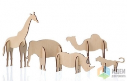 На листе фанеры рисуется олень ( или другое животное - по задумке автора). Художественные способности для этого не обязательны – все схематично. Понадобится по отдельности изобразить туловище (1 деталь), ноги (2 детали), рога (или другие части тела) по необходимости. Разрезается лист фанеры на детали электролобзиком. В заготовке туловища поделки для сада сделайте 2 косых (по направлению к центру) разреза – для ног. Зазубрины зачищаются. Вставляем в прорези ноги, рога прикрепляем с помощью строительного степлера.