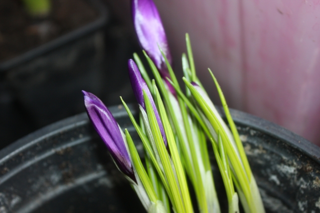 зацвели крокусы в массе, на улице стоят, на солнышке!