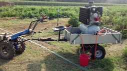 Установка Weed blasting включает в себя пескоструйное устройство, воздушный компрессор и мотоблок. Передвигаясь вдоль грядок, установка «расстреливает» абразивными частицами сорные проростки, сильно повреждая их стебли и листья.