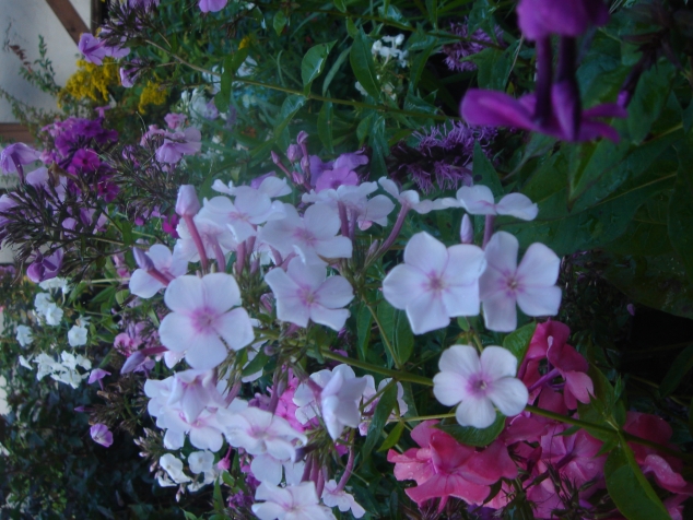В утренние часы, вечером и в пасмурную погоду впечатляет сказочной голубизной флокс 'Моя Любовь, Моя Отрада' (4.5; 80; С.). Невозможно не плениться изысканными переливами холодных голубовато-фиолетовых оттенков с эффектной изменчивостью цвета сорта 'Голубая Отрада' (3.8; 80-90; СП.), одного из лучших флоксов с голубой окраской. Глубокий лиризм пронизывает акварельно-нежный розовый, с сиреневым оттенком, цветок 'Обними, Поцелуй' (3.6-4.0; 70-80; С.).