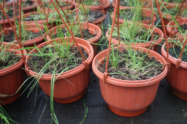 Такая вот наростает травушка в кашпо, что б бородой украсить разные места. трава, как писала ранее, из Австрии привезена, просто оторвана из такого же кашпо... как называется не скажу. Зимует обрезанная в теплице, весной рассаживается и разрастается.