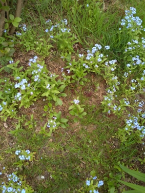 Вот обещала тебе, Оксик, незабудки по газонной, теперь их уже нет, вчера газонила траву и их и маргаритки срезала.