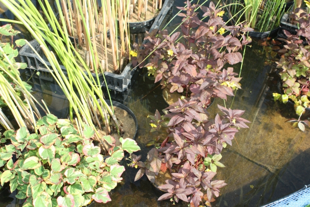 Расцветают первые кувшинки, основное цветение придется на июль-август, и в это же время распускаются высокий желтый василистник и удивительно гармоничные вертикали дербенника. К августу заискрится мелким золотым бисером солидастер.