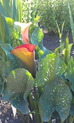 Для более удобного размещения в саду интересны низкорослые сорта калл: «Хамелеон» - нежный персиковый цвет с золотистыми оттенками; Калла Эллиота - цвет покрывала внутри желтый, а снаружи — желтовато-зеленый, диаметре может достигать 15 см; Калла Ремани - окрас покрывала розово-красный.