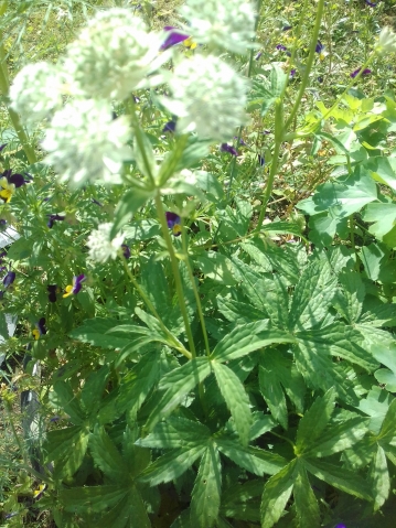 1 — астранция большая, 3 — герань, 4 — синюха голубая.