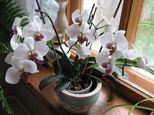 Я купила орхидею на распродаже, довольно замученную и больную перед Новым годом. Сразу пересадила, купив готовый грунт на основе коры, удалила загнившие корни, кончики обработала зеленкой. Орхидея была с одной веткой цветения, бутоны завяли, а вот крупные цветы радовали своей красотой 3 месяца! Новых листьев не появилось, но всё растение воспряло и выглядело здоровым! Сейчас цветки отпали, цветонос пока не трогаю, но можно обрезать сверху на две-три почки, оставив над почкой 5 см для усыхания стебля. Поливаю один раз в неделю погружением в ёмкость с талой водой (её заготовила зимой из снега 10-ти литровую канистру ), теперь начну подкормку специальным удобрением для орхидей! (про куриный помёт слышу впервые… ). Две другие отлично цветут, зимой досвечивала вечерами, под кашпо на подоконник положила пенопласт. Ничего сложного в уходе нет!