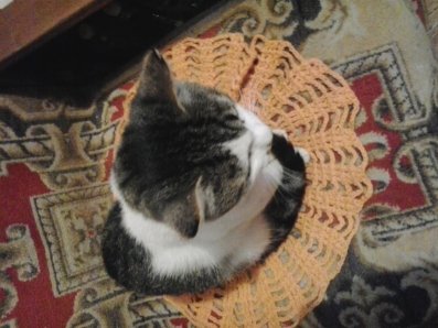 Марина, красивые коврики связала котейкам. Покажу и я наших.)