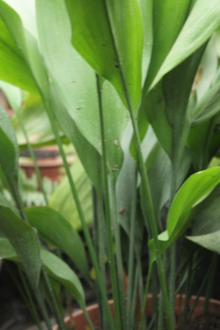 Эта группа не столь разнообразна. Ее декоративнолиственные представители отличаются малой привлекательностью, поэтому не слишком популярны в культуре. Узкие, тонкие, заостренные к концам линейные листья злаковидных растений собраны в негустой пучок (Хлорофитум, Аир, Осока). Разместив их одиночно на полочке или в композиции с прямостоячими экземплярами, имеется возможность создать оригинальный зеленый уголок.