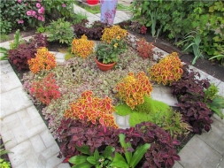 Благодаря тому, что сейчас выведены сорта с яркими окрасками листьев бегонии и особенно колеуса, эти цветы успешно используют при создании контрастных композиций, декоративных и без цветения.