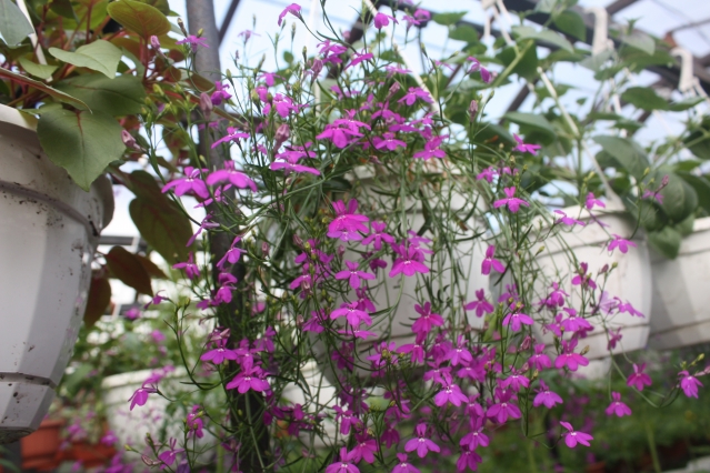 Пышно растущая (1) лобелия эринус (Lobelia erinus) и современные сорта двухцветной (2) ампельной герани (Pelargonium peltatum) простилают свой цветочный ковер по обе стороны цветочного ящика. Следующий эффектный дуэт, расположенный по центру композиции, образует стремящаяся ввысь (3) ангелония (Angelonia gardneri) с лиловыми цветками, собранными в стройные, элегантные соцветия, и махровая, розовая (4) ампельная петуния. Ангелония, родом из Бразилии, образует длинные гроздья, усыпанные множеством цветков, похожих на цветки орхидеи, которые способны к самоочищению. Такая композиция, расположенная в теплом, солнечном, защищенном месте, сохраняет свое обильное цветение до первых заморозков.