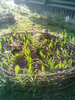 Шаг второй: После того как все колышки вбиты возьмите горсть ивы (около 9 стержней), и переплетите их. Возможно будет необходимо немного подправить колышки.