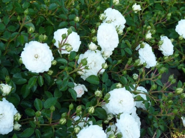 В традиционных розариях розы делятся четко по сортам, для самых парадных частей розария используются чайно-гибридные розы. Но это совсем необязательно! В пределах розария вы можете составлять цветники-коллекции, объединив вместе розы разных сортов. Также вы можете сделать ставку на розы с одинаковой расцветкой цветков, а можете – на яркий «коктейль» красок. Очень стильно смотрятся цветники, в которых собраны не розы разных сортов, а розы разных типов, например, такой, где собраны вместе чайно-гибридные, миниатюрные и почвопокровные розы. Этот прием позволяет получить из роз настоящую скульптурную группу, есть перепад высот, горизонтали и вертикали, разница форм и фактур.