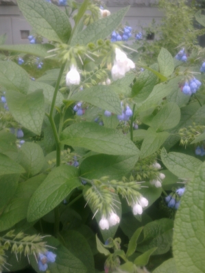 Очень похож на окопник. Онн лекарственный и цветет вроде красиво, но если сильно мешает, раундапом травите ( года два — три подряд), и выкапывайте ослабленную поросль, он сильный, не зря живокостом назвали )