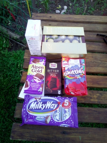 Дамы, во всем виновата Люция. Это она нас всех передружила и продолжает дружить, а мы этому рады.Мы уже немножко познакомились с Женечкой раньше (так получилось), а сейчас обменялись подарками. Общение заочное, впечатления только по переписке.Женя скромный человек, мало о себе пишет, не навязывает свое общение и мнение. С ней легко договориться, приятно общаться.Надеюсь на дальнейшее взаимно приятное общение. Сейчас у нее напряженный график на работе. Как сможет , так к нам присоединиться. Порадуйтесь вместе с нами. Получила я большую коробку, НО на 100 гр легче чем написано в квитанции. Девочка- операционист испугалась до смерти. Пришлось ее успокоить. А в коробке -СУНДУК, а в сундуке - сокровища, богатства несметные. Женя их выслала с гидрогелем, так что влаги им хватило, немножко поблекли от недостатка света. Ехали 8 дней.