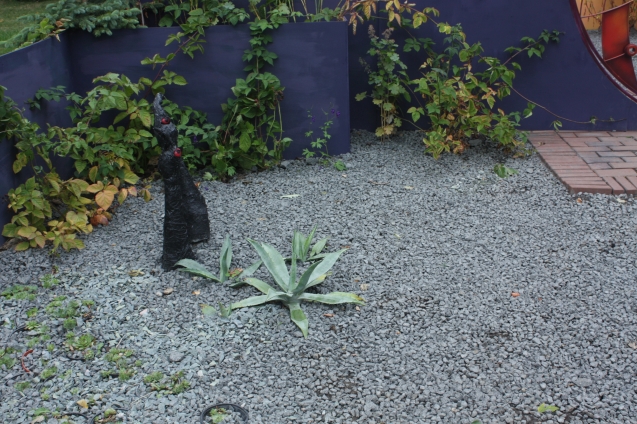 И еще не поняла насчет клумбы-лестницы у забора. Мне кажется, она будет смотреться как отдельный объект, не относящийся непосредственно к забору. Как она должна располагаться — впритык к забору?
