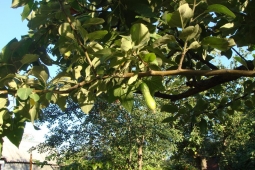 Плети направляйте по бечёвкам вверх, прямо в крону деревьев. После огуречные плети найдут сами своё место на прочных опорах-ветках и развиваются хорошо, будучи защищёнными листвой и от жгучего солнца, и холодной росы. И нередко уже глубокой осенью, когда начинает облетать яблоневая или рябиновая листва, вы можете обнаружить в кроне пару-тройку ароматных огурчиков.