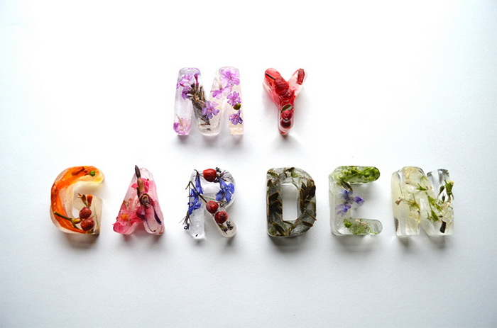Петра Благова представила все буквы латинского алфавита от A до Z. Всего 26 ледяных заглавных литер, которые, судя по всему, достаточно тяжело было уберечь от таяния в процессе фотографирования. Изюминка проекта в том, что вместе с водой дизайнер заморозила зелень папоротника, лепестки цветов и ягоды, что делает фигурные льдинки свежими, яркими и сочными. Цветочный алфавит - прекрасное напоминание о лете и безграничное поле для "словесных" импровизаций!