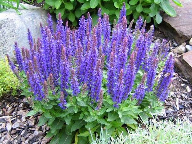 Шалфей, он же сальвия, считается растением˗многолетником. Но встречаются однолетние и двухлетние виды. Это – полукустарник с многочисленными стеблями, с густыми небольшими серо-зелеными листьями и колосовидным соцветием, состоящим из множества светло-фиолетовых цветков.
