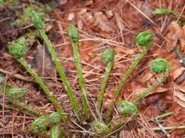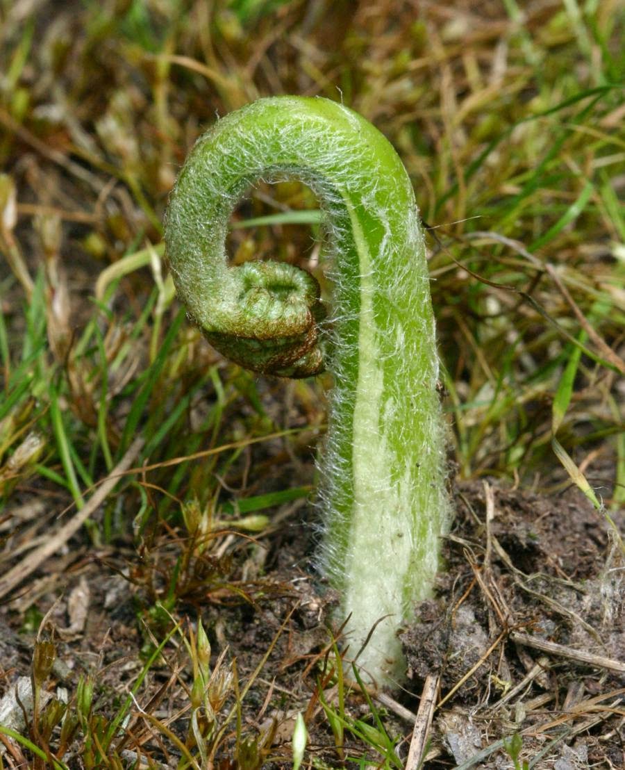 В пищу пригодны не все папоротники. Это, например, чистоустник азиатский (Osmundastrum asiaticum), его у нас осмундом называют. Но чаще всего собирают самый обыкновенный орляк, то есть Орляк обыкновенныйPteridium aquilinum. Собирать надо пока не отросли листья-ваи, собирают вот такие улитки - рахисы.