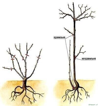 Что бы я сделала (исходя из того, что вижу): без вариантов верхние две тонкие веточки убрала бы, оставила бы три (наверное) почки на стволике (верхний срез над почкой на высоте половины диаметра стволика). Как распускаются почки — тоже не очень нравится, если честно. Затем сделала бы углубление небольшое вокруг стволика с бортиками повыше, туда — азотное удобрение, три раза залить (залили по края, вода впиталась, опять залили, вода впиталась, опять залили), через пару недель посмотреть, что будет происходить, потом — по ситуации.